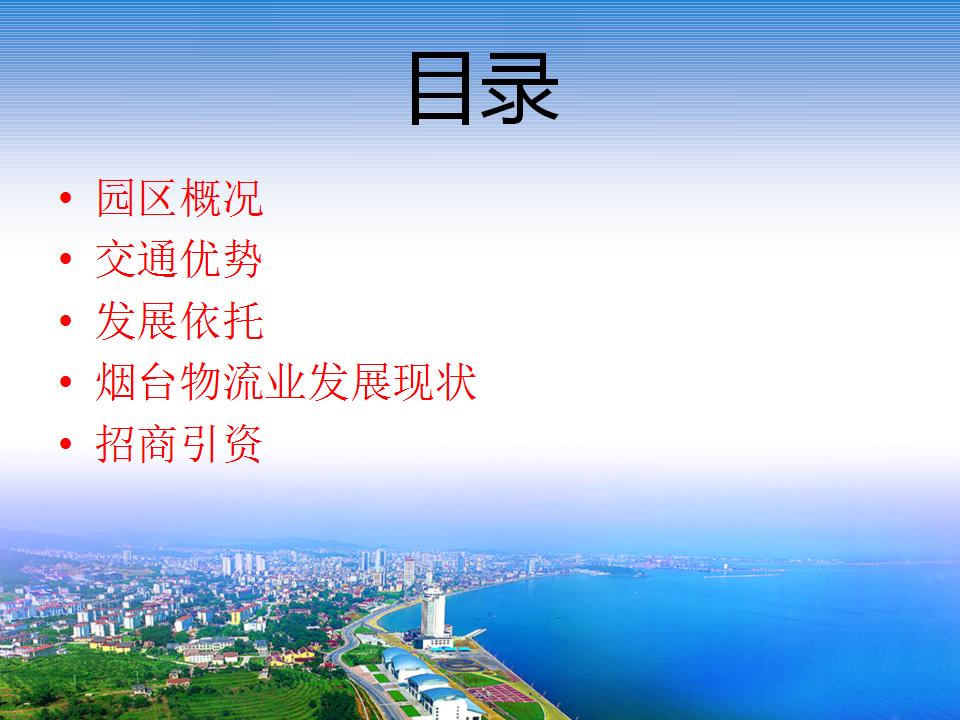 (煙臺)國際綜合物流園區(qū)招商手冊,可供產(chǎn)業(yè)園招商手冊參考。 01園區(qū)概況 02交通優(yōu)勢 03發(fā)展依托 04物流業(yè)發(fā)展現(xiàn)狀 05招商引資