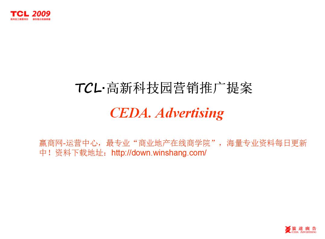 廣東惠州市隆塬TCL科技園招商策劃方案PPT: 一 、項(xiàng)目概況 二 、項(xiàng)目背景 三 、項(xiàng)目分析 四 、項(xiàng)目市場定位 五 、項(xiàng)目客戶價(jià)值 項(xiàng)目資源整合優(yōu)化 七 、招商目標(biāo) 八 、目標(biāo)客戶 九 、招商渠道與方式、費(fèi)用 十、招商工作管理 十一、 工作計(jì)劃 十二、 招商理念與態(tài)度
