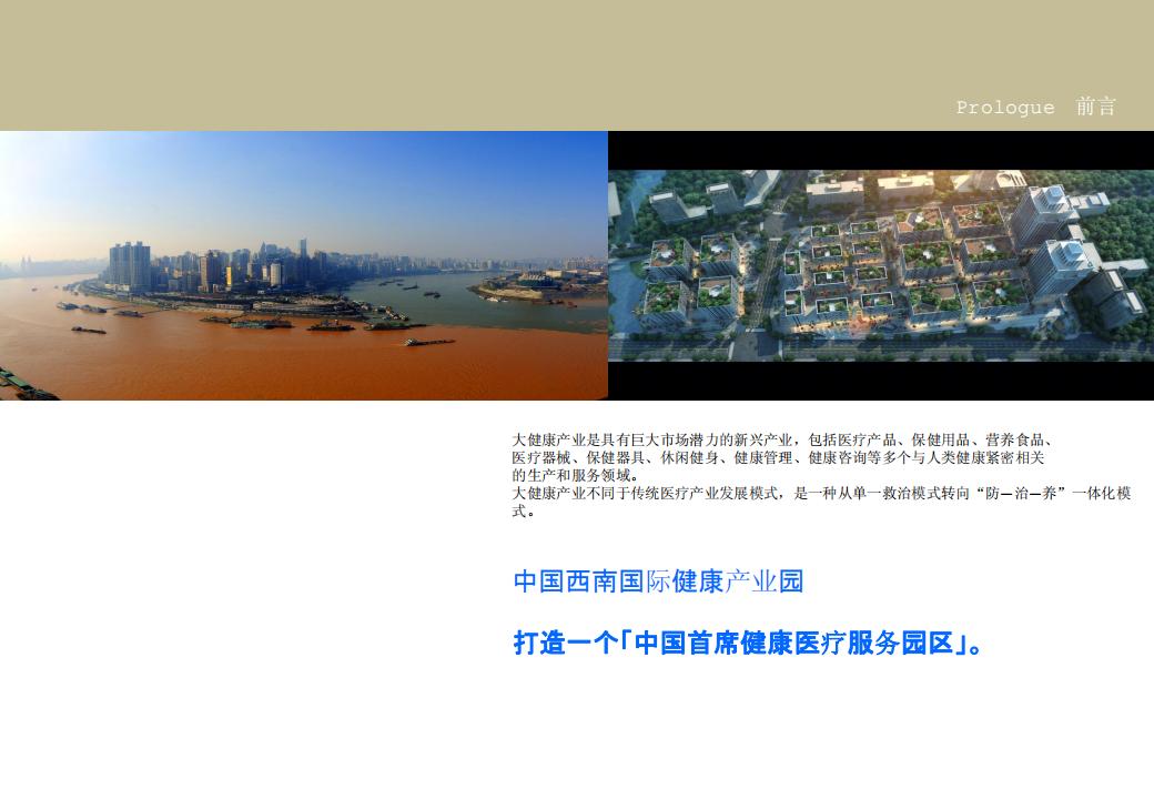 中國西南國際大健康產(chǎn)業(yè)園推介手冊,可供招商運(yùn)營、營銷推廣等參考。 一、大健康產(chǎn)業(yè)未來發(fā)展機(jī)會 01核心觀點(diǎn) 02國際大健康產(chǎn)業(yè)現(xiàn)狀 03大健康產(chǎn)業(yè)鏈 二、中國西南國際健康產(chǎn)業(yè)園 01區(qū)位篇 02交通篇 03規(guī)劃篇(項(xiàng)目定位與目標(biāo)、功能規(guī)劃與布局) 04成果篇(招商進(jìn)展、項(xiàng)目指標(biāo)) 05政策篇(國家政策、社會資本、項(xiàng)目服務(wù))