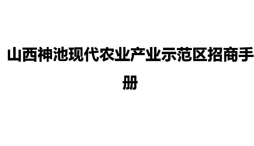 山西神池現(xiàn)代農業(yè)產業(yè)示范區(qū)招商手冊: 01走進神池; 02神池現(xiàn)代農業(yè)產業(yè)示范區(qū); 03招商優(yōu)勢; 04優(yōu)惠政策; 05十大產業(yè)鏈示意圖