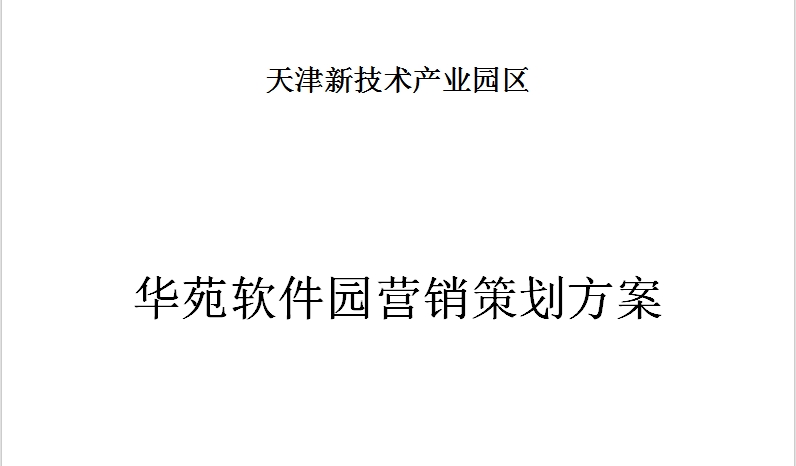 天津新技術(shù)產(chǎn)業(yè)園區(qū)華苑軟件園營(yíng)銷策劃方案 一、項(xiàng)目概況 二、項(xiàng)目建設(shè)單位概況 三、軟件園項(xiàng)目市場(chǎng)調(diào)研與分析 四、整體銷售計(jì)劃 五、具體計(jì)劃的實(shí)施 六、收益分析