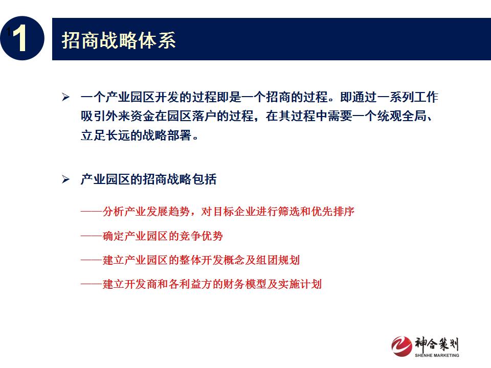 產(chǎn)業(yè)園區(qū)招商策劃方案,供參考。 第一部分:招商戰(zhàn)略體系 第二部分:招商方案工作項(xiàng)目及內(nèi)容舉例 第三部分:成都神合策劃簡(jiǎn)介