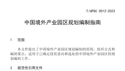 中國境外產(chǎn)業(yè)園區(qū)規(guī)劃編制指南:中國城市規(guī)劃學(xué)會(huì)發(fā)布團(tuán)體標(biāo)準(zhǔn)《中國境外產(chǎn)業(yè)園區(qū)規(guī)劃編制指南》(T/UPSC 0012-2023),該標(biāo)準(zhǔn)自發(fā)布之日起實(shí)施。