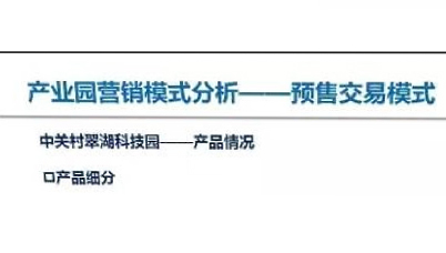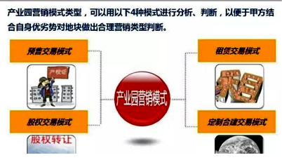 產(chǎn)業(yè)園區(qū)營銷模式分析研究: 01預(yù)售交易模式; 02租賃交易模式; 03股權(quán)交易模式; 04定制合建交易模式
