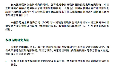 本報(bào)告是BCG與中國(guó)領(lǐng)先互聯(lián)網(wǎng)公司共同針對(duì)中國(guó)互聯(lián)網(wǎng)和中國(guó)數(shù)字化產(chǎn)業(yè)的發(fā)展進(jìn)行深度合作交流的成果。我們期待以此拋磚引玉,引發(fā)更多的思索和探討。