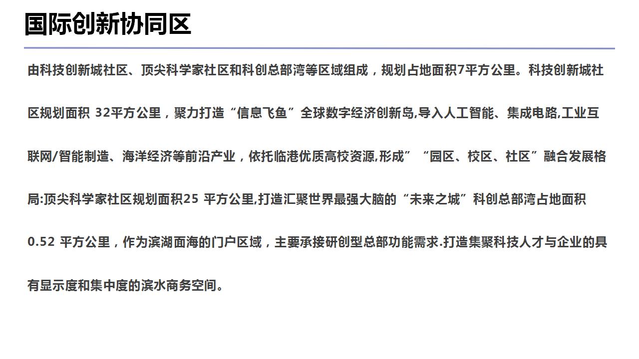 上海市臨港新片區(qū)重點園區(qū)及特色產(chǎn)業(yè)園區(qū):根據(jù)臨港新片區(qū)投資促進(jìn)服務(wù)中心官方發(fā)布的2024版《投資臨港》中介紹,臨港的投資載體產(chǎn)業(yè)園區(qū)除洋山特殊綜合保稅區(qū)之外,分為七大特色產(chǎn)業(yè)園區(qū)(東方芯港、生命藍(lán)灣、大飛機(jī)園、信息飛魚、海洋創(chuàng)新園、動力之源、國際氫能谷)以及十八個重點園區(qū)。