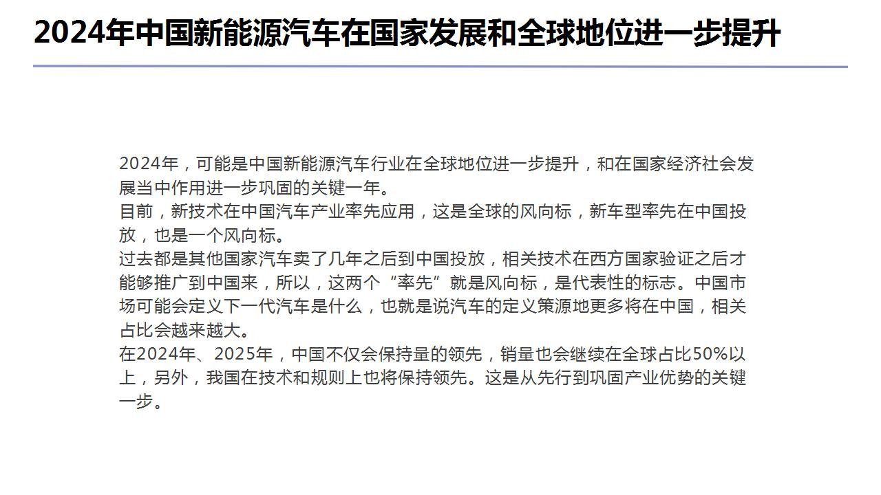 一、2024年中國新能源汽車在國家發(fā)展和全球地位進一步提升;