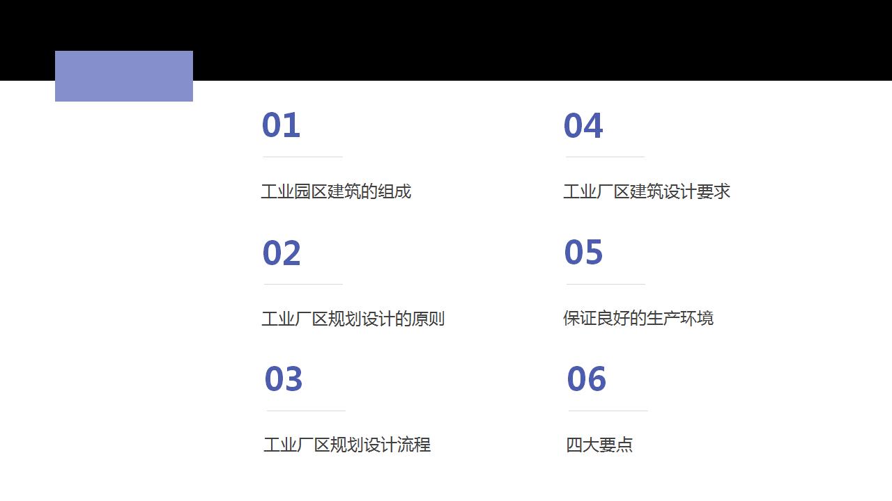 產(chǎn)業(yè)園工業(yè)廠區(qū)規(guī)劃設(shè)計(jì)方案: 01工業(yè)園區(qū)建筑的組成; 02工業(yè)廠區(qū)規(guī)劃設(shè)計(jì)的原則; 03工業(yè)廠區(qū)規(guī)劃設(shè)計(jì)流程...