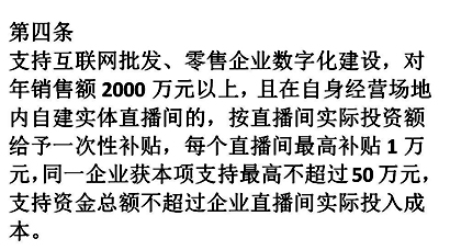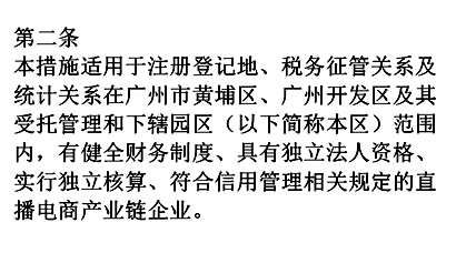 黃埔區(qū)扶持直播電商行業(yè)發(fā)展措施:本措施與本區(qū)其它扶持政策中存在同類扶持項(xiàng)目的,符合條件的企業(yè)當(dāng)年可選擇申請(qǐng)本措施或其它扶持政策予以扶持,但只可享受單個(gè)政策的扶持。