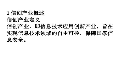 信息技術(shù)應(yīng)用創(chuàng)新產(chǎn)業(yè)全面研究分析:01信創(chuàng)產(chǎn)業(yè)概述;02市場規(guī)模及行業(yè)前景;03產(chǎn)業(yè)鏈及價值鏈;04產(chǎn)業(yè)鏈分析;05結(jié)束語...