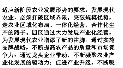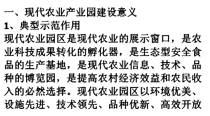 現(xiàn)代農(nóng)業(yè)產(chǎn)業(yè)園的五大運(yùn)營模式:現(xiàn)代農(nóng)業(yè)園區(qū)是現(xiàn)代農(nóng)業(yè)的展示窗口,是農(nóng)業(yè)科技成果轉(zhuǎn)化的孵化器,是生態(tài)型安全食品的生產(chǎn)基地,是現(xiàn)代農(nóng)業(yè)信息、技術(shù)、品種的博覽園,是提高農(nóng)村經(jīng)濟(jì)效益和農(nóng)民收入的必然選擇。