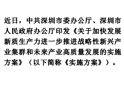 深圳“20+8”產(chǎn)業(yè)集群 2.0版本:加快發(fā)展新質(zhì)生產(chǎn)力,進(jìn)一步發(fā)展壯大戰(zhàn)略性新興產(chǎn)業(yè)集群和培育發(fā)展未來產(chǎn)業(yè)。