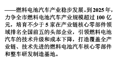 2022-2025廣州市燃料電池汽車示范應(yīng)用工作方案:以重點(diǎn)區(qū)域和重點(diǎn)領(lǐng)域示范推廣為突破口,加快燃料電池汽車推廣應(yīng)用,促進(jìn)燃料電池汽車全產(chǎn)業(yè)鏈發(fā)展。在技術(shù)創(chuàng)新、產(chǎn)業(yè)鏈建設(shè)、氫能供給、車輛推廣、發(fā)展環(huán)境營造等方面加快推進(jìn),不斷增強(qiáng)自主創(chuàng)新能力和產(chǎn)品競爭力,建設(shè)燃料電池汽車技術(shù)創(chuàng)新和產(chǎn)業(yè)發(fā)展高地,助力廣州新能源汽車產(chǎn)業(yè)和氫能產(chǎn)業(yè)高質(zhì)量發(fā)展。