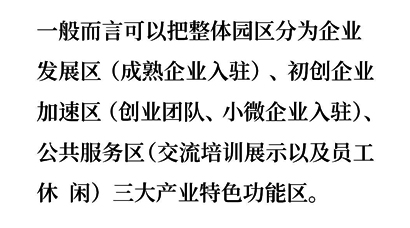 產(chǎn)業(yè)園運(yùn)營(yíng)管理手冊(cè):從產(chǎn)業(yè)方面,基于大的區(qū)域市場(chǎng)環(huán)境背景,將產(chǎn)業(yè)類型進(jìn)行細(xì)分定位。圍繞產(chǎn)業(yè)上下游企業(yè)的入駐,打造一個(gè)全生態(tài)全生命周期的產(chǎn)業(yè)閉環(huán),在這個(gè)生態(tài)圈里小企業(yè)獲得更多機(jī)會(huì)和人脈,大企業(yè)獲取上下游的資源。
