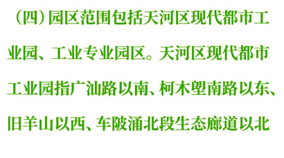 廣州市天河區(qū)加快推動現(xiàn)代都市工業(yè)高質(zhì)量發(fā)展的若干政策措施:園區(qū)范圍包括天河區(qū)現(xiàn)代都市工業(yè)園、工業(yè)專業(yè)園區(qū)。天河區(qū)現(xiàn)代都市工業(yè)園指廣汕路以南、柯木塱南路以東、舊羊山以西、車陂涌北段生態(tài)廊道以北區(qū)域(即2112工園范圍)。工業(yè)專業(yè)園區(qū)指在天河區(qū)內(nèi)有獨立法人資格,實行獨立核算,有專業(yè)招商團隊和成熟招商運營方案,總建筑面積超過2萬平方米,園區(qū)產(chǎn)業(yè)定位符合天河區(qū)現(xiàn)代都市工業(yè)發(fā)展方向,且與天河區(qū)簽訂合作協(xié)議的現(xiàn)代都市工業(yè)產(chǎn)業(yè)園。