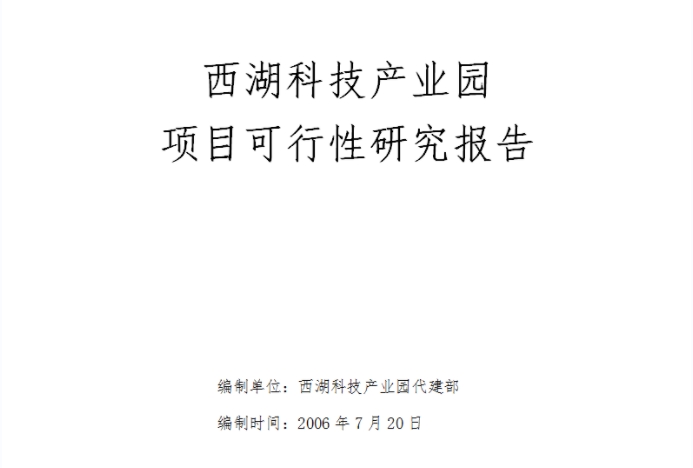 西湖科技產(chǎn)業(yè)園項(xiàng)目可行性研究報(bào)告: