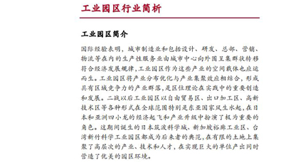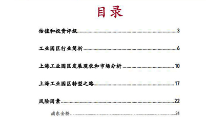 上海工業(yè)園區(qū)轉(zhuǎn)型深度研究報告: 一、估值和投資評級 二、工業(yè)園區(qū)行業(yè)簡析 三、上海工業(yè)園區(qū)發(fā)展現(xiàn)狀和市場分析 四、上海工業(yè)園區(qū)轉(zhuǎn)型之路 1.風險因素 2.浦東金橋 3.張江高科
