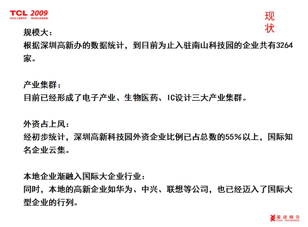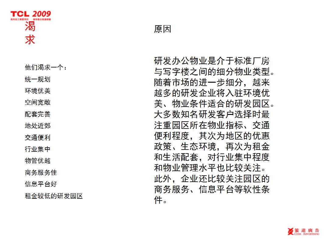 廣東惠州市隆塬TCL科技園招商策劃方案PPT: 一 、項目概況 二 、項目背景 三 、項目分析 四 、項目市場定位 五 、項目客戶價值 項目資源整合優(yōu)化 七 、招商目標 八 、目標客戶 九 、招商渠道與方式、費用 十、招商工作管理 十一、 工作計劃 十二、 招商理念與態(tài)度