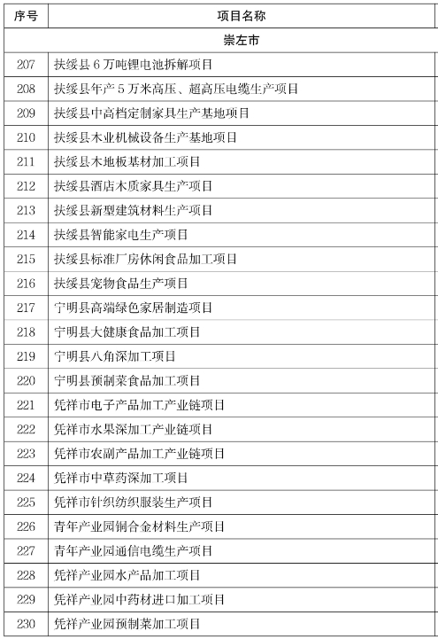 新公布的第二批廣西重點招商合作項目共230個,總投資額2495億元。涉及電子信息、先進裝備制造、生物醫(yī)藥、新能源汽車、食品加工、農(nóng)產(chǎn)品加工、教育、大健康和高端文旅體育、林業(yè)和高端綠色家居等產(chǎn)業(yè)領域。