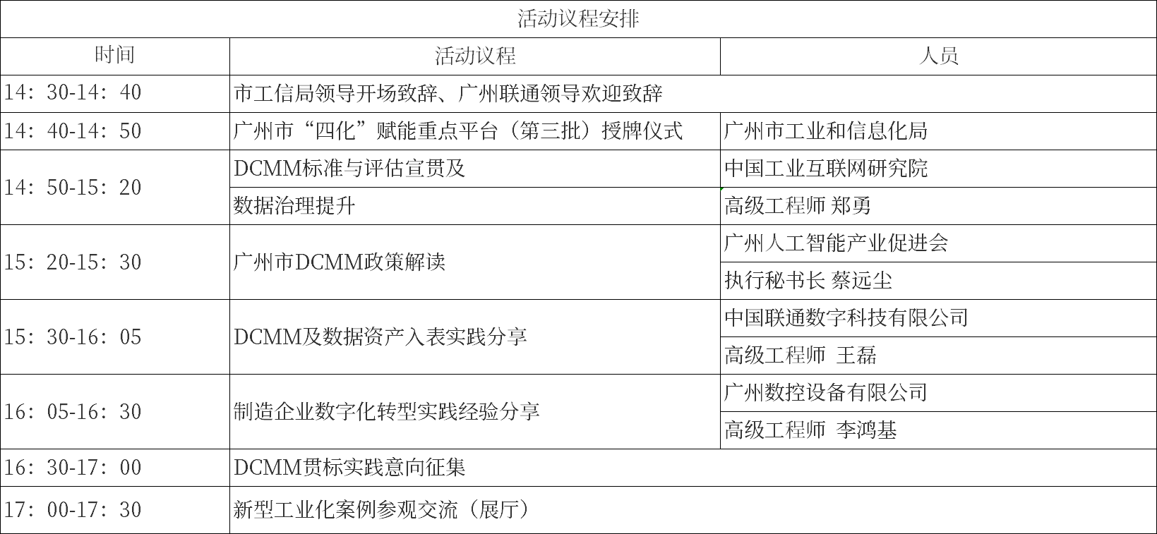 企業(yè)參會(huì)人員:廣州市“四化”賦能重點(diǎn)平臺(tái)(第三批)服務(wù)商、制造行業(yè)企業(yè)首席數(shù)據(jù)官或數(shù)據(jù)治理負(fù)責(zé)人,參加線下活動(dòng)的企業(yè)限報(bào)2人。