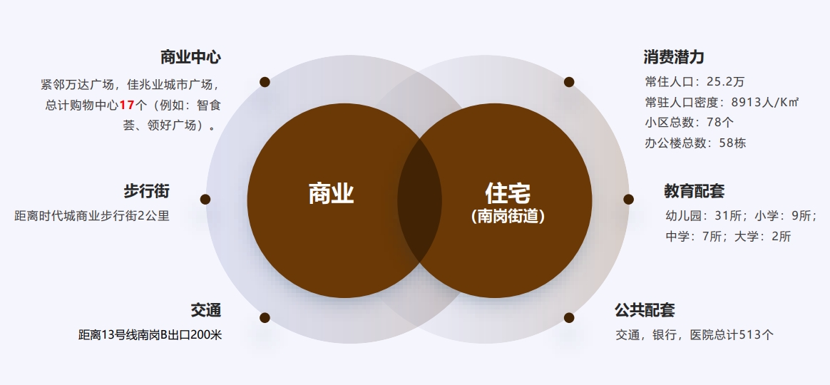 園區(qū)緊鄰黃埔大道,以填補周邊消費市場空缺為商機,搶占舊改后人口回流紅利為先機!自帶辦公消費人群、流動人 群和周邊常駐人群三股合流。