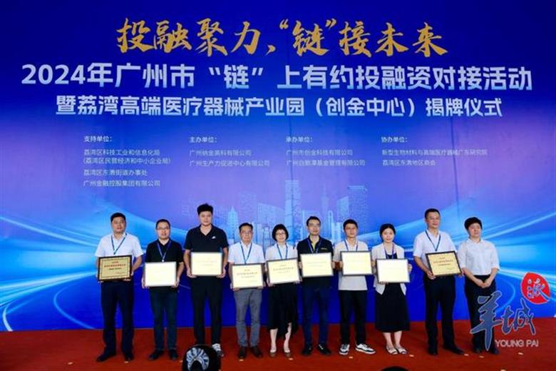 11月14日,以“投融聚力,鏈接未來”為主題的2024年廣州市“鏈”上有約投融資對接活動暨荔灣高端醫(yī)療器械產(chǎn)業(yè)園(創(chuàng)金中心)揭牌活動在荔灣區(qū)白鶴沙路8號舉行。