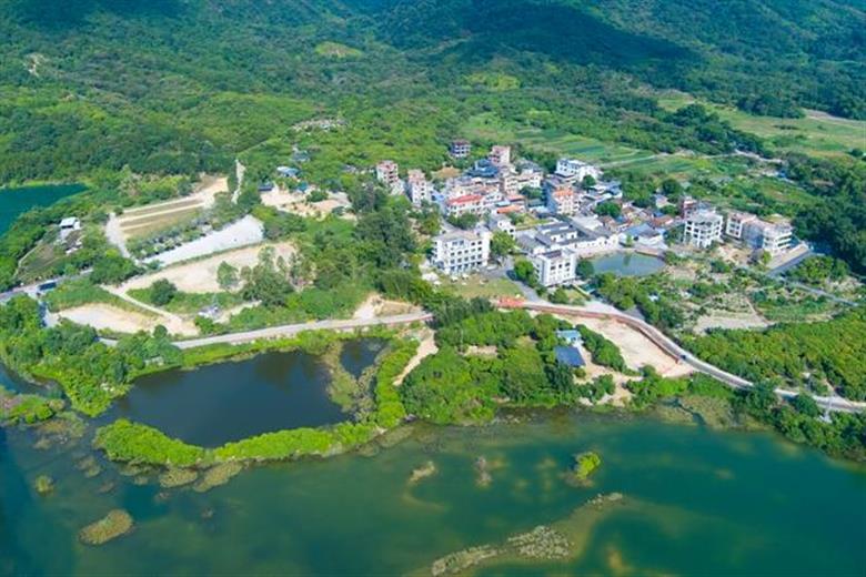 增城區(qū)派潭鎮(zhèn)的森林海旅游度假區(qū)就位于“引領(lǐng)區(qū)”內(nèi),這里本是一個(gè)礦坑,本世紀(jì)初,當(dāng)?shù)卣疄轫憫?yīng)可持續(xù)發(fā)展,停止礦產(chǎn)開(kāi)采,2015年,一家增城本地企業(yè)投入大約7000萬(wàn)元修復(fù)礦坑。礦坑的改造計(jì)劃引入了生態(tài)修復(fù)和創(chuàng)意設(shè)計(jì),將曾經(jīng)荒蕪的采石坑轉(zhuǎn)變?yōu)槿缃竦穆糜瓮?,水體、植被和步道的巧妙結(jié)合讓這里煥發(fā)出新的生機(jī)。游客可以在礦坑湖畔漫步,欣賞藍(lán)天與湖面的交相輝映,仿佛進(jìn)入了一個(gè)天然的鏡像世界。