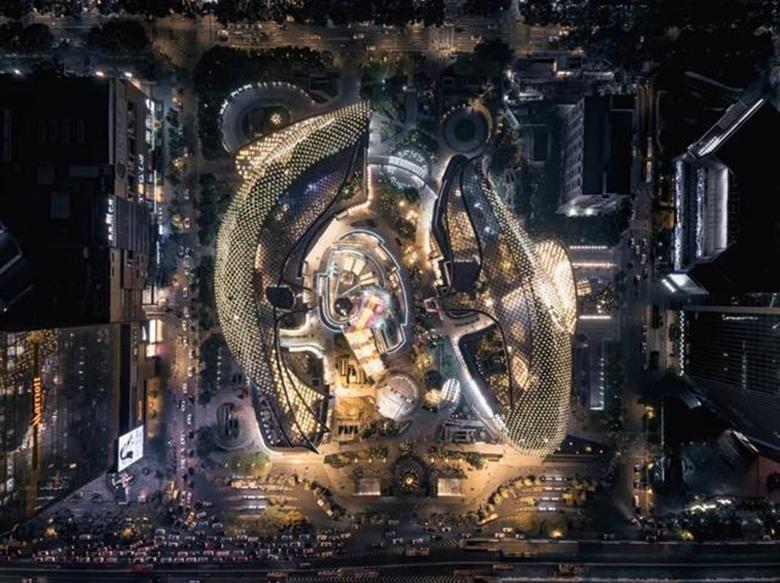 “雙魚”造型的天環(huán)廣場(chǎng) / 圖蟲創(chuàng)意