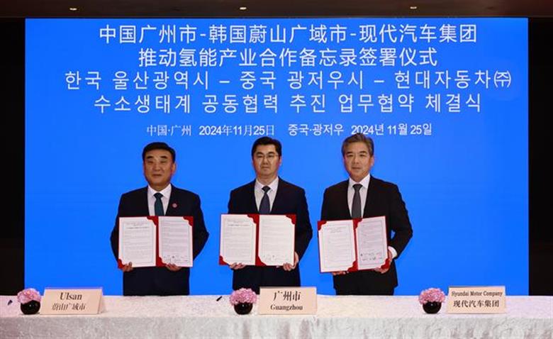 現(xiàn)代汽車集團與中國廣州市、韓國蔚山市簽署推動氫能產(chǎn)業(yè)發(fā)展合作備忘錄