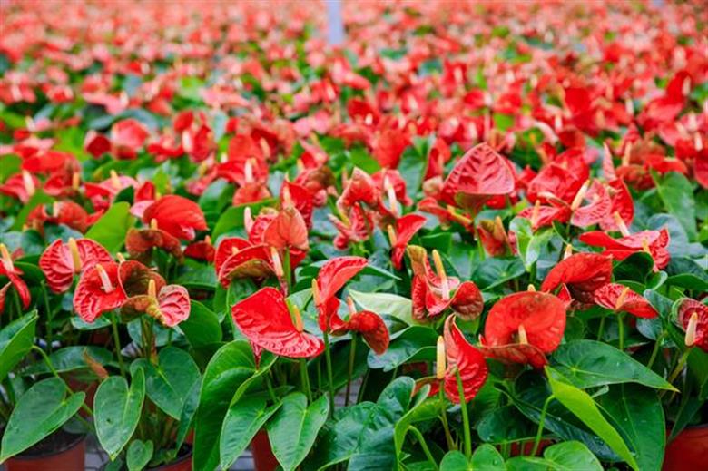 如火的紅掌組成一片絢麗花海。新華網(wǎng)發(fā)(受訪者 供圖)