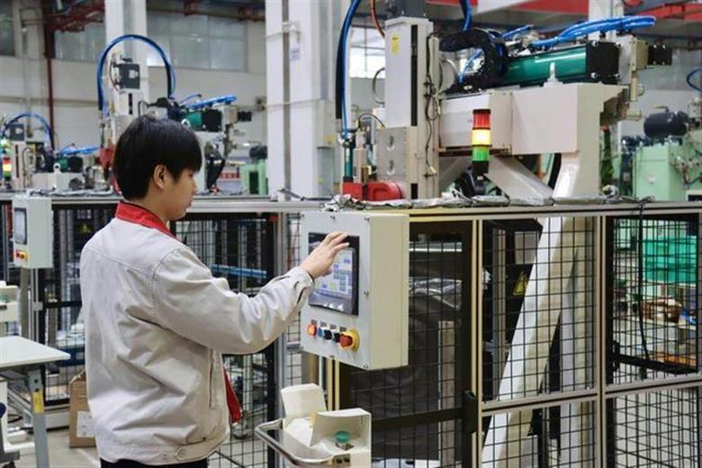 在廣州亨龍智能裝備股份有限公司的生產(chǎn)車間,產(chǎn)業(yè)工人正在安裝調(diào)度自動化焊機。該公司是一家專門以電阻焊接工藝為基礎(chǔ)的智能化裝備開發(fā)及應(yīng)用的高新技術(shù)企業(yè),也是國家火炬計劃重點高新技術(shù)企業(yè)及專精特新“小巨人”企業(yè)、省高新技術(shù)企業(yè)、市人工智能企業(yè)、市隱形冠軍企業(yè)。