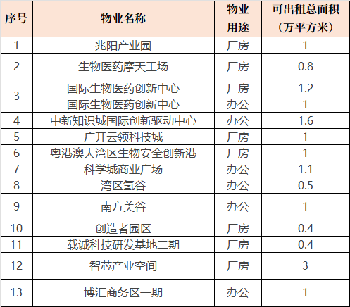 區(qū)屬國(guó)企“零租金”試點(diǎn)產(chǎn)業(yè)空間清單