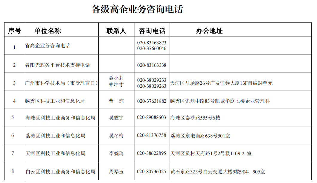 (一)省高企業(yè)務(wù)咨詢電話:020-83163873、37660046;“省陽光政務(wù)平臺(tái)”技術(shù)支持電話:020-83163338。