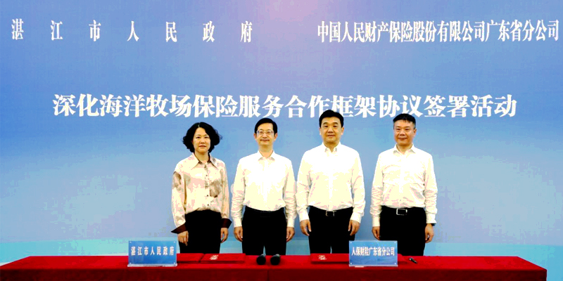4月18日,湛江市人民政府與中國(guó)人民財(cái)產(chǎn)保險(xiǎn)股份有限公司廣東省分公司(簡(jiǎn)稱(chēng)人保財(cái)險(xiǎn)廣東分公司)圍繞湛江市海洋牧場(chǎng)發(fā)展規(guī)劃,深化海洋牧場(chǎng)保險(xiǎn)服務(wù)合作等相關(guān)內(nèi)容簽署戰(zhàn)略合作框架協(xié)議。