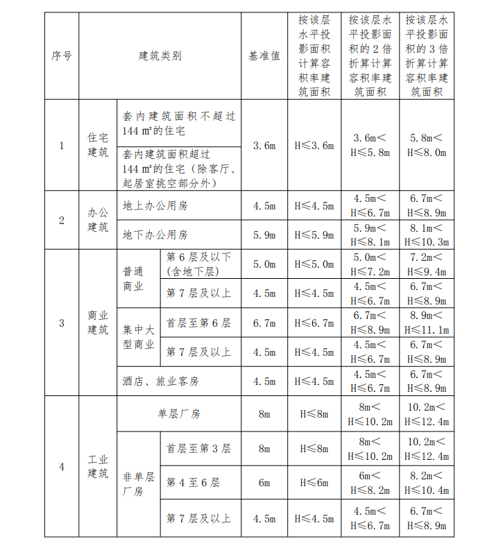 附:廣州市各類建筑計算容積率建筑面積層高標準表