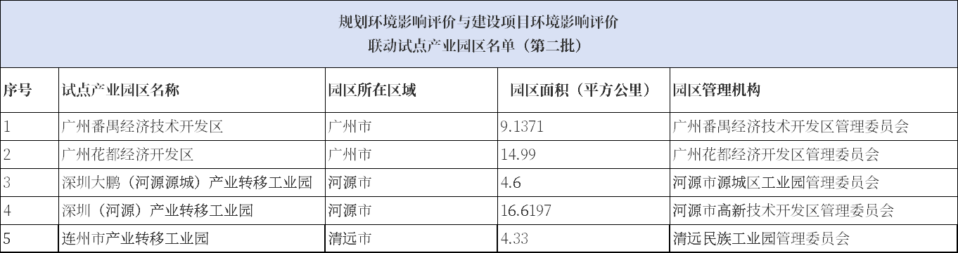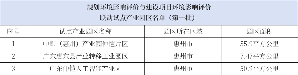 此前,2024年3月,廣東省生態(tài)環(huán)境廳辦公室發(fā)布了,規(guī)劃環(huán)境影響評價與建設項目環(huán)境影響評價聯(lián)動試點產(chǎn)業(yè)園區(qū)名單(第一批),名單有3個園區(qū)。